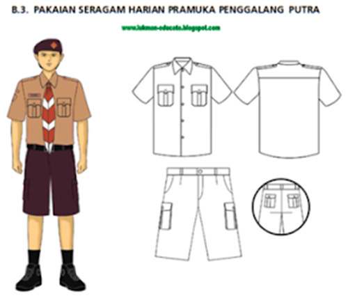 - Pakaian Seragam Pramuka harus dikenakan oleh mereka yang berhak,secara lengkap. rapih, bersih, dan benar, sesuai dengan ketentuan yang berlaku, lebih-lebih si pemakai melakukan kegiatan di depan umum.