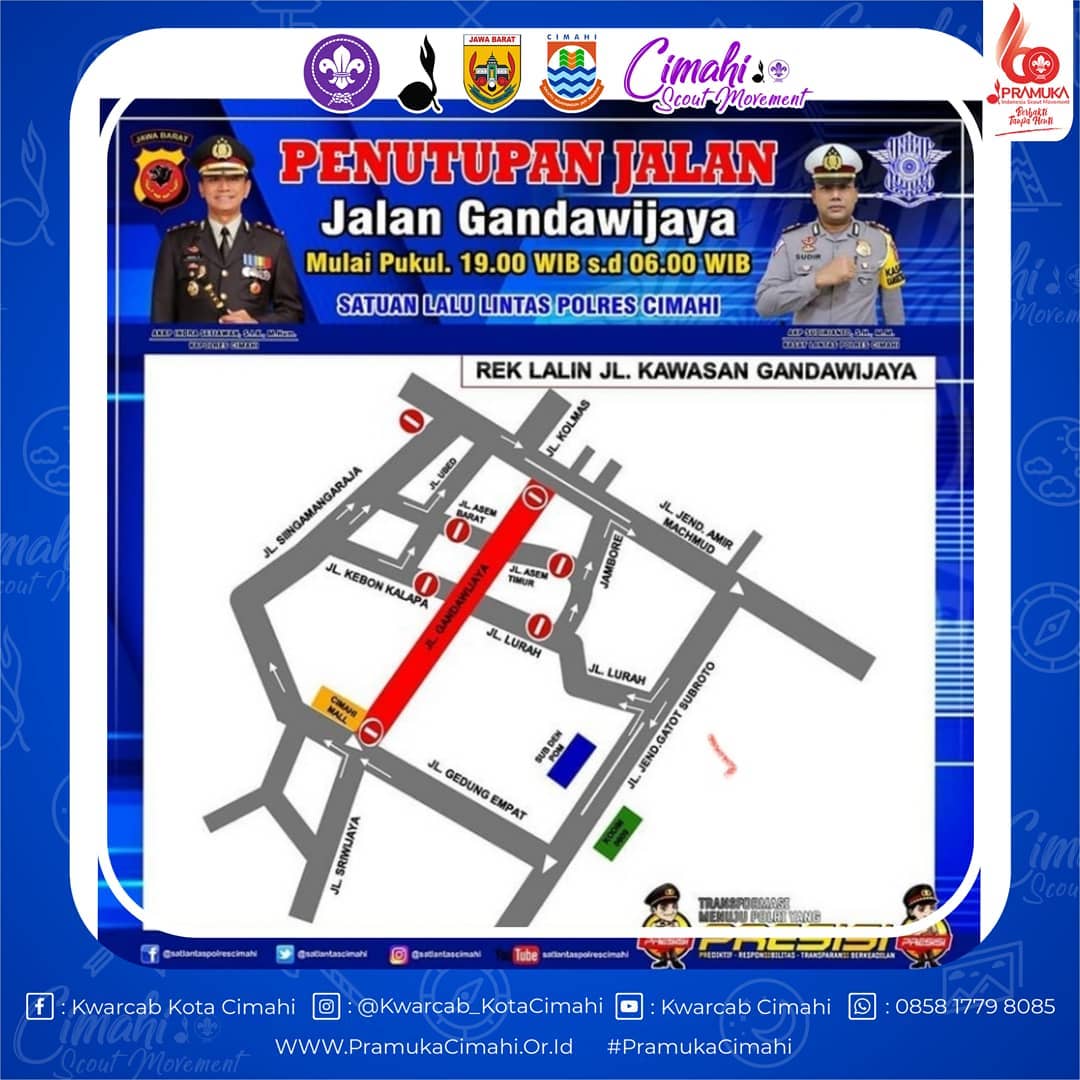 @satlantascimahi satlantascimahi Kami beritahukan bagi wargi Kota Cimahi pada khususnya..dikarenakan penyebaran Covid 19 di wilayah Kota Cimahi kembali meningkat mulai nanti malam untuk Jalan Gandawijaya Kota Cimahi mulai pukul 19.00 s/d 06.00 wib akan dilakukan Penutupan Jalan……